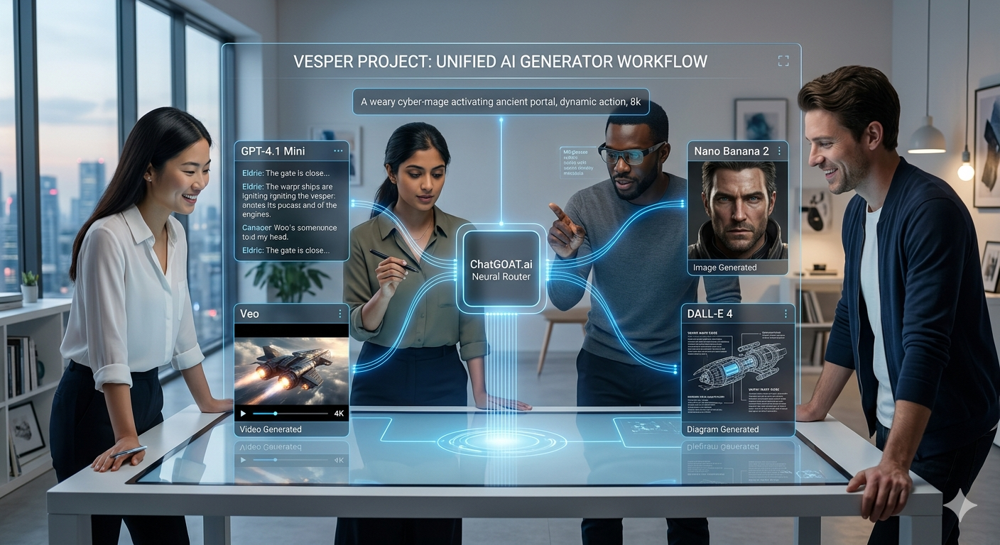 In der aktuellen Landschaft geht es beim "besten" KI-Generator aus Text nicht mehr nur um die Ausgabequalität; es geht um Interoperabilität. Plattformen wie ChatGOAT.ai führen diesen Wandel an, indem sie es den Nutzern ermöglichen, Brücken zwischen verschiedenen "isolierten" Modellen zu schlagen – wie etwa der Wechsel zwischen der Logik von DALL-E 4 und der Kunstfertigkeit von Midjourney v7 – und das innerhalb einer einzigen Unterhaltung.