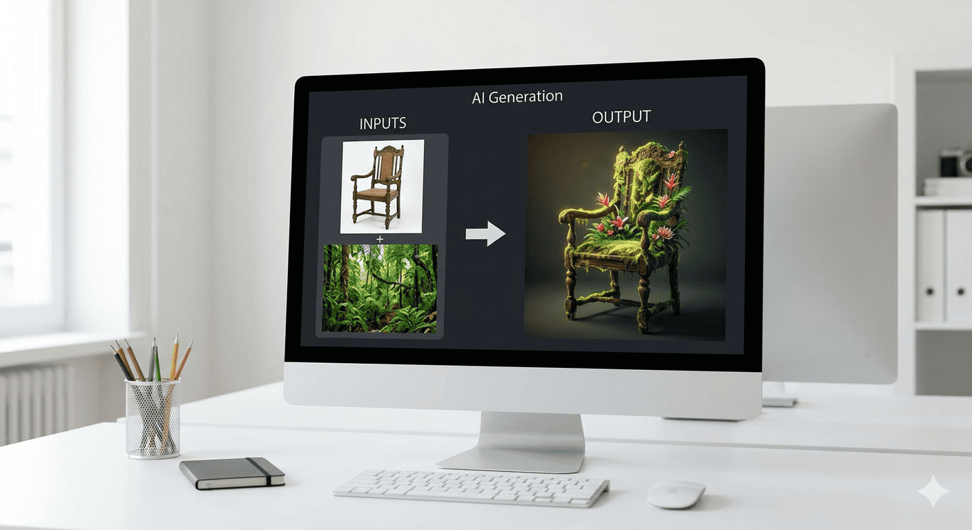 - Nutzten "Image-to-Image"-Komposition, um ihre Produkt-Renderings in diese KI-generierten Umgebungen einzufügen.