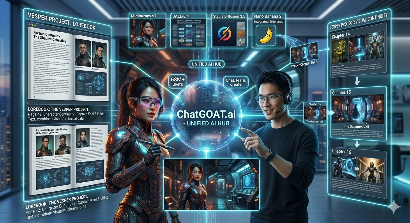 Pour de nombreux utilisateurs, ChatGOAT.ai est devenu le générateur d'images IA incontournable car il résout le problème de la "fatigue des abonnements". Au lieu de payer pour cinq services différents, les utilisateurs peuvent accéder au meilleur d'OpenAI, aux modèles d'images basés sur Gemini de Google et à des moteurs créatifs spécialisés (comme Nano Banana 2) depuis un seul tableau de bord. Cela permet d'effectuer des tests A/B rapides : générer le même prompt sur trois modèles différents pour voir lequel capture le mieux "l'ambiance".
