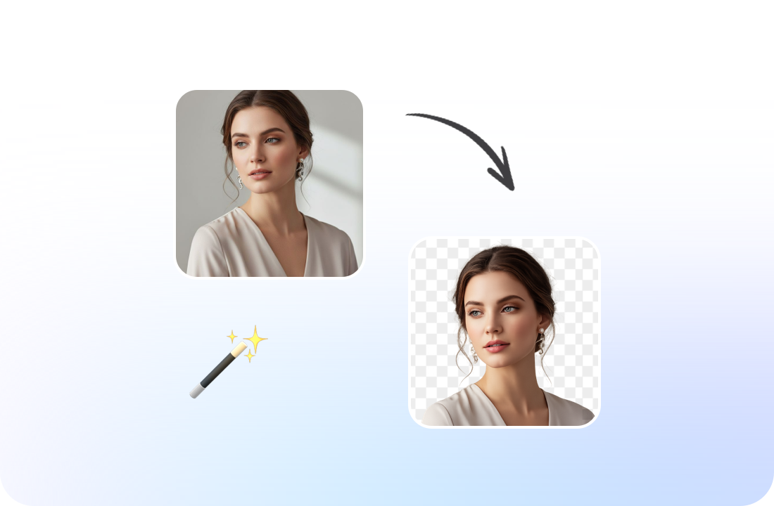 此背景移除工具能精確偵測圖片中的主要主體,並將其與背景清晰分離。無論是 Amazon 上的商品、個人資料圖片中的人物,還是毛髮複雜的寵物,AI 都能確保邊緣平滑、去背自然。 適用於電子商務清單 (Shopify/Etsy)、行銷創意、標誌設計,以及任何需要清晰、透明呈現的內容。