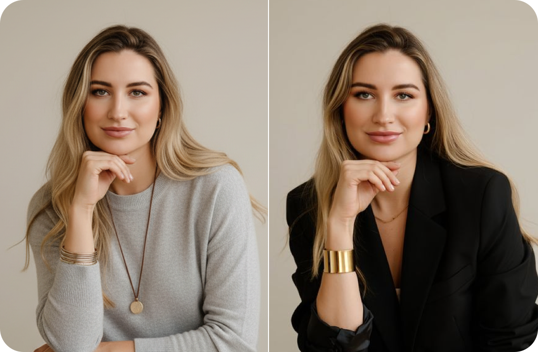 選擇您想要的職業、服裝風格(例如:商務正裝、醫生、房地產經紀人)和背景偏好。