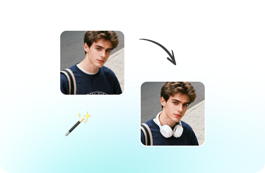 我們的 AI 圖像編輯器將生成式填補的功能帶到您的瀏覽器中。只需在圖像的任何部分上輕輕塗抹,然後輸入提示即可修改它。您可以更改模特兒的服裝、添加太陽眼鏡、改變髮型,或修復 AI 生成藝術中變形的手。它是局部修復(Inpainting)的終極工具,讓您在保持圖像其餘部分完好無損的情況下精煉細節。